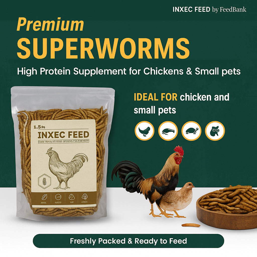 INXEC FEED Dried Superworms (80g / 240g /480g) β a premium, nutrient-rich protein supplement for chickens, birds, reptiles, and small pets.